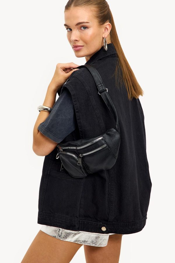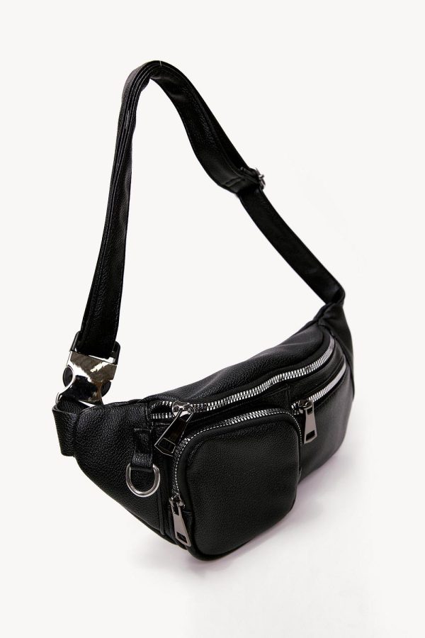 Deze zwarte bum bag heeft een stijlvol leather-look design met zilverkleurige hardware details. De verstelbare strap en meerdere vakjes maken deze tas super praktisch voor een festival. De statement zippers geven een coole twist aan dit on trend accessoire.