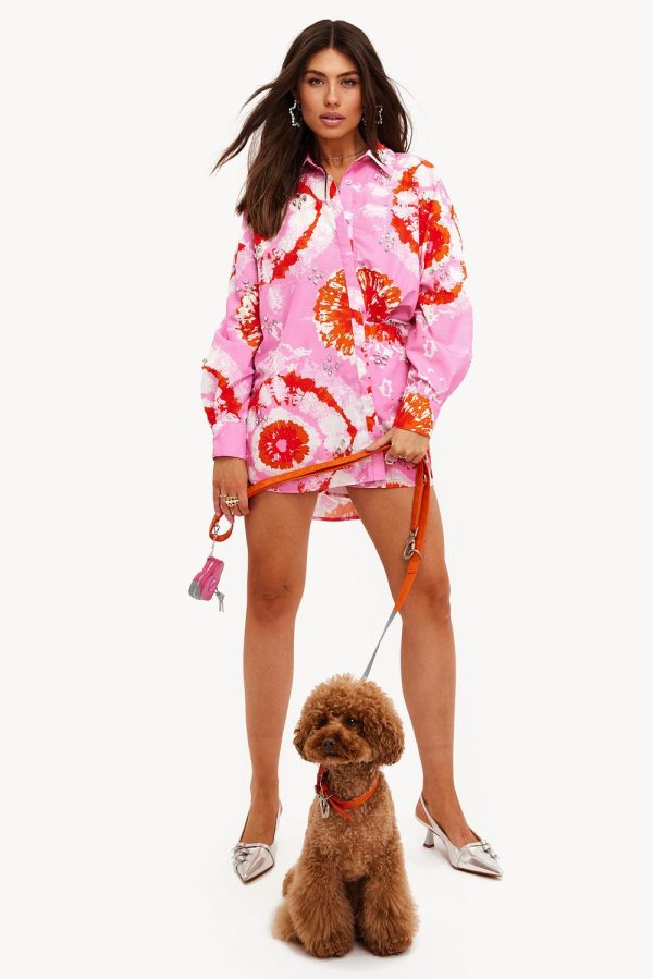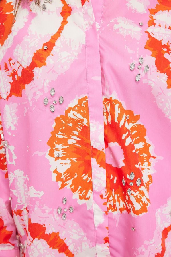 Deze blouse heeft een oversized pasvorm, een bloemenprint, strass steentjes, lange mouwen en een knoopsluiting aan de voorkant.Model informatie: Carmen is 175 cm en draagt maat S.
