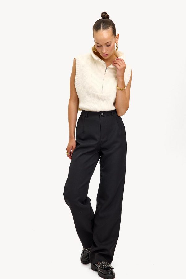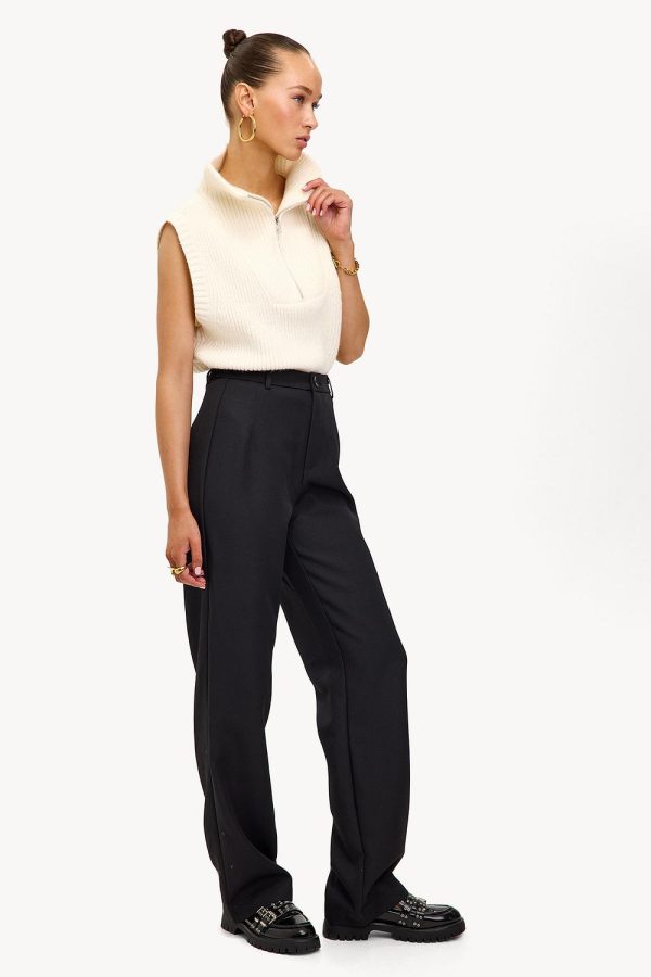 Deze zwarte pantalon heeft een strakke, tailored fit voor een professionele uitstraling. De straight leg zorgt voor een gebalanceerde look van taille tot enkel. Gemaakt van een comfortabele polyester-elastaan blend voor optimaal draagcomfort tijdens lange werkdagen. Style deze pantalon met een crisp white blouse voor een on trend office outfit.Model informatie: Berenika is 172 cm en draagt maat XS.