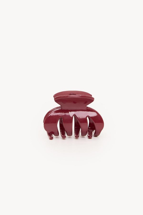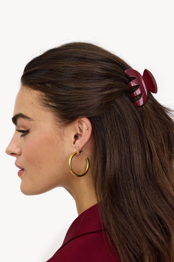 Deze bordeauxrode haarclaw heeft een stijlvol glossy design met moderne cut-out details. De stevige clip zorgt voor een goede grip en is perfect voor het creëren van een coole updo. De minimalistische vorm geeft een luxe touch aan je look.