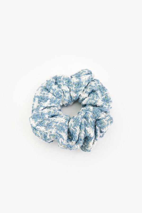 Deze turquoise scrunchie heeft een subtiel abstract patroon voor een coole touch. Het zachte katoen-polyester materiaal zorgt voor een comfortabele grip zonder je haar te beschadigen. De ruime vorm creëert een statement look in je ponytail.