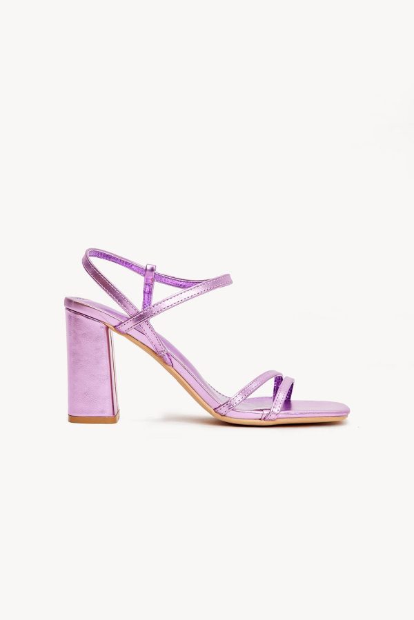 Deze hakken hebben verstelbare bandjes, een vierkante neus en een hoge hak.