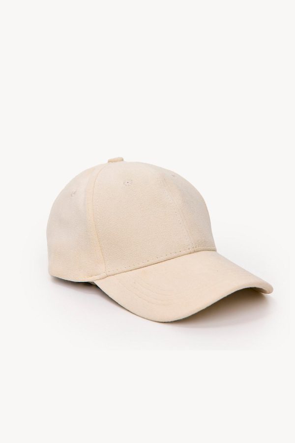 Deze beige cap heeft een luxe suède-like textuur voor een moderne twist. De minimalistische design details en subtiele kleur maken deze cap perfect voor dagelijks gebruik. De verstelbare sluiting zorgt voor een comfortabele fit.