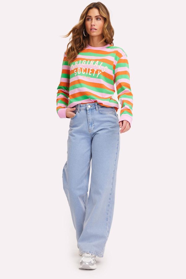 Dit it-shirt heeft strepen, een tekstopdruk op de voorkant, een wijde pasvorm, een ronde hals en lange mouwen.Model informatie: Ida is 175 cm en draagt maat S.