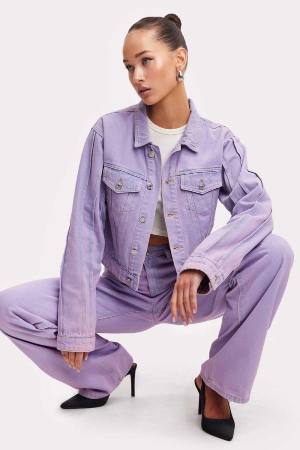 Dit jacket heeft een denim stof met naden en een knoopsluiting aan de voorkant.