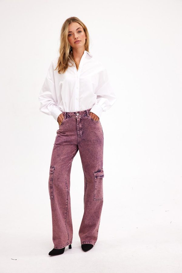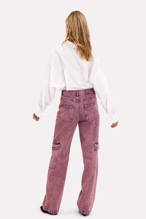Deze jeans heeft een rechte pasvorm, een rits- en knoopsluiting, steekzakken, riemlusjes, twee zakken aan de broekspijpen en een verwassen look.Model informatie: Noor is 174 cm en draagt maat S.