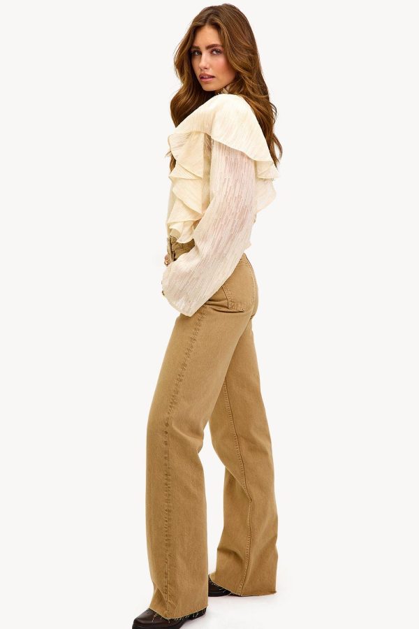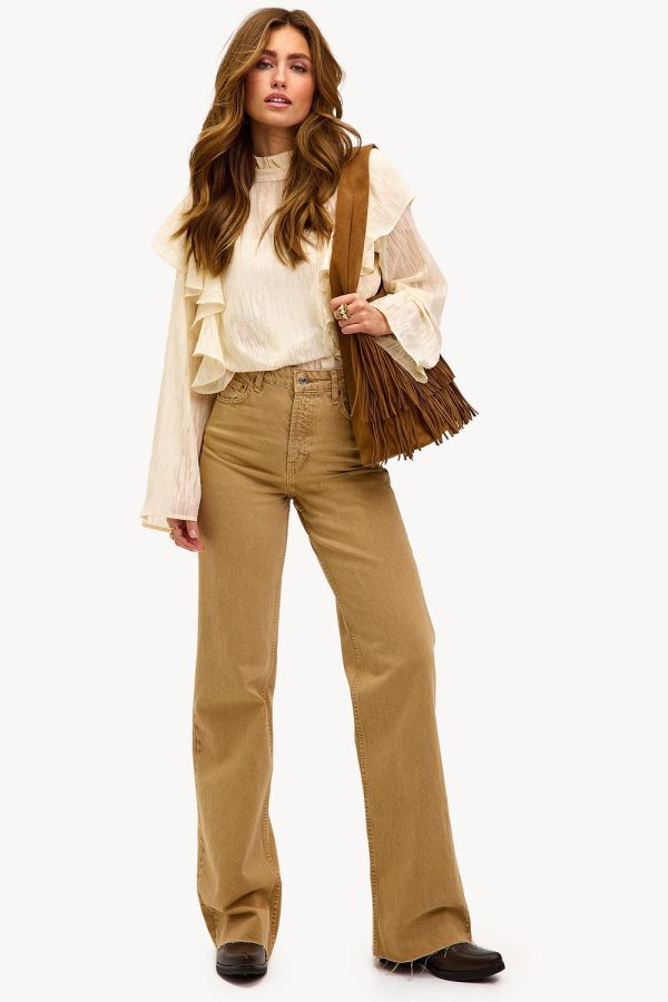 Deze 5-pocket straight jeans in zandkleur heeft een high-waisted fit met rechte pijpen. De 100% katoenen denim kwaliteit geeft deze jeans een luxe uitstraling. De clean look met subtiele stiksels creëert een moderne twist aan dit tijdloze design.Model informatie: Ida is 175 cm en draagt maat S.