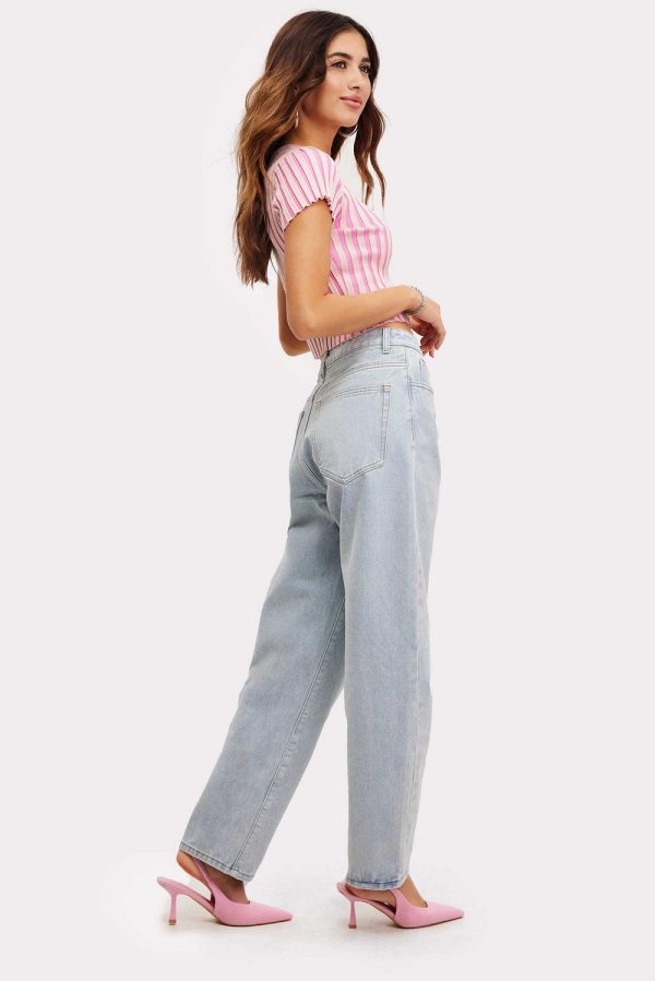 Deze jeans heeft wijde broekspijpen, een rits- en knoopsluiting en zakken aan de voor- en achterkant.Model informatie: Iman is 178 cm en draagt maat S.