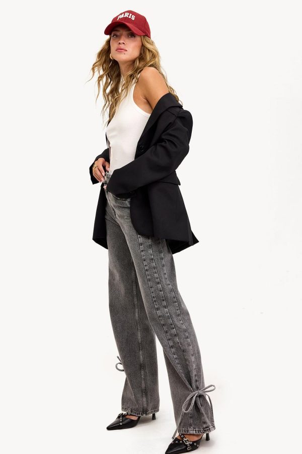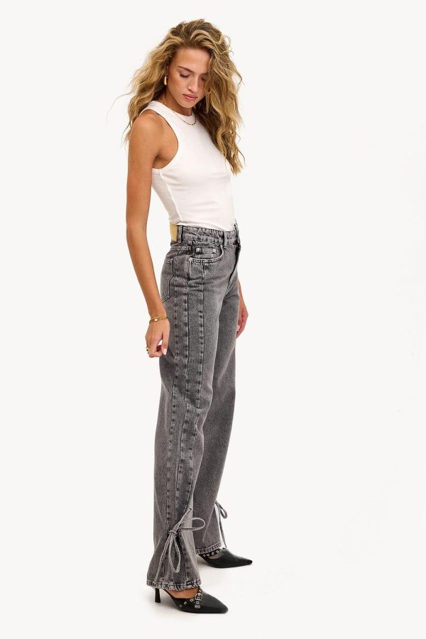Deze 5-pocket straight jeans heeft een coole grijze vintage wash en strikdetails bij de zoom. De high-waisted fit met rechte pijpen creëert een moderne shape. De 100% katoenen kwaliteit geeft deze denim een luxe uitstraling.Model informatie: Shirel is 175 cm en draagt maat S.