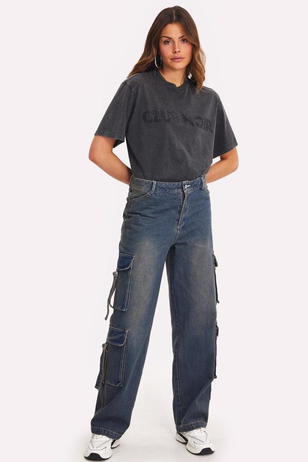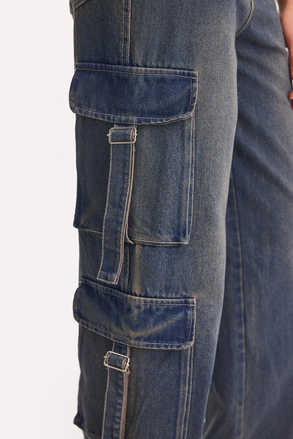 Deze cargo jeans heeft rechte broekspijpen, een mid waist, een rits- en knoopsluiting en grote zakken.
