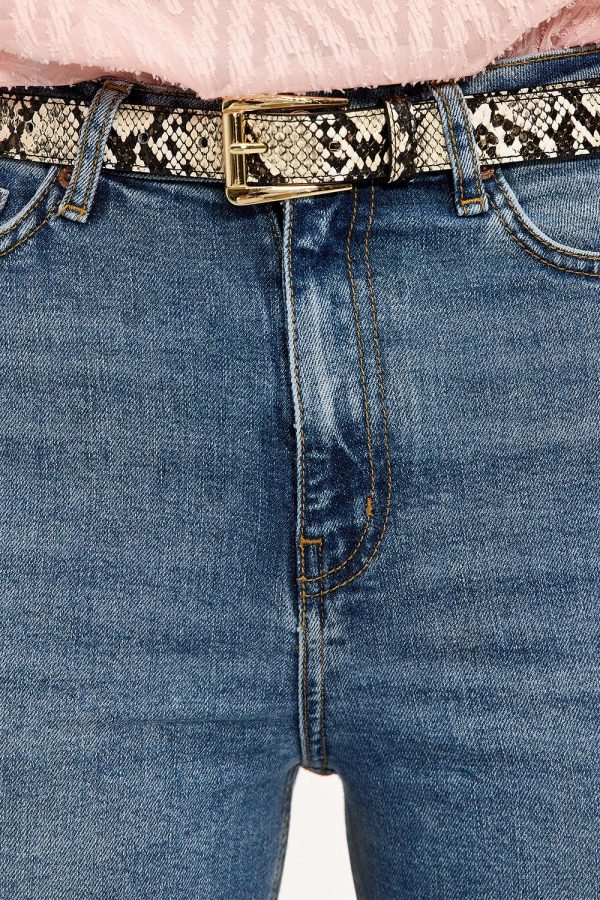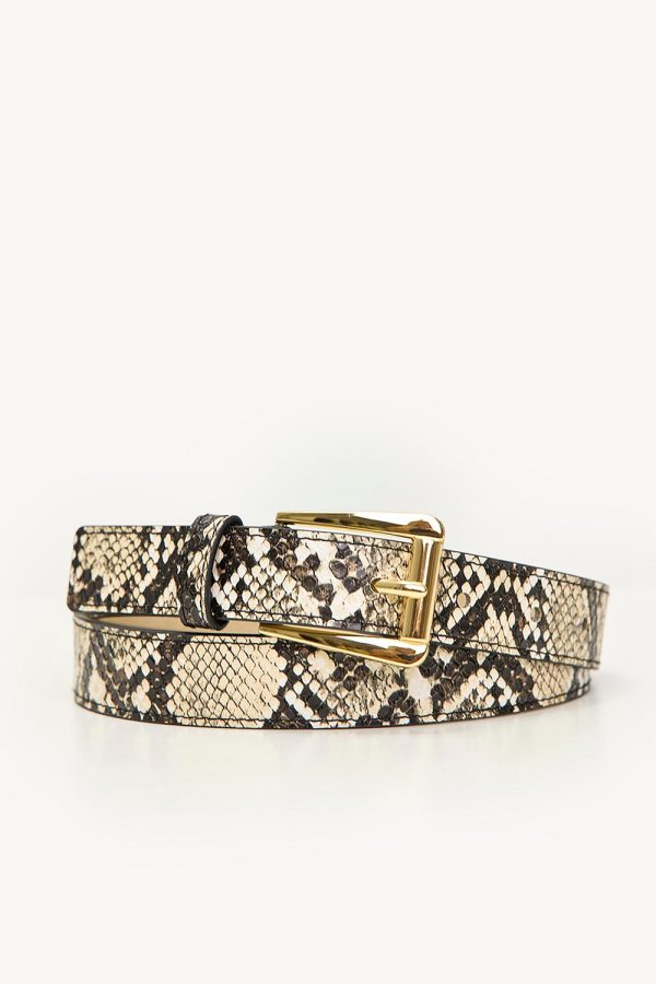 Deze beige riem heeft een luxe snake print en goudkleurige gesp voor een chique accent. De smalle pasvorm met subtiel textured design geeft een moderne twist aan je outfit. Style deze riem met een high-waisted jeans voor een on trend look.