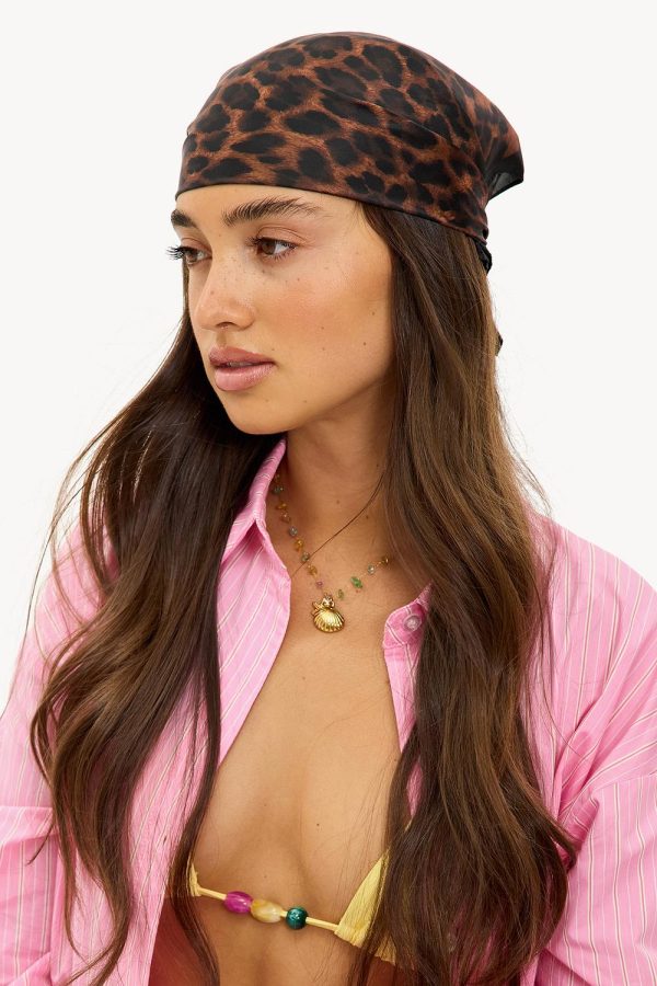 Deze statement bandana heeft een luxe leopard print in warme bruintinten. Het zachte materiaal en de veelzijdige styling opties maken deze accessory tot een coole update voor je look. Style de bandana als hoofdband of als sjaal voor een on trend touch.