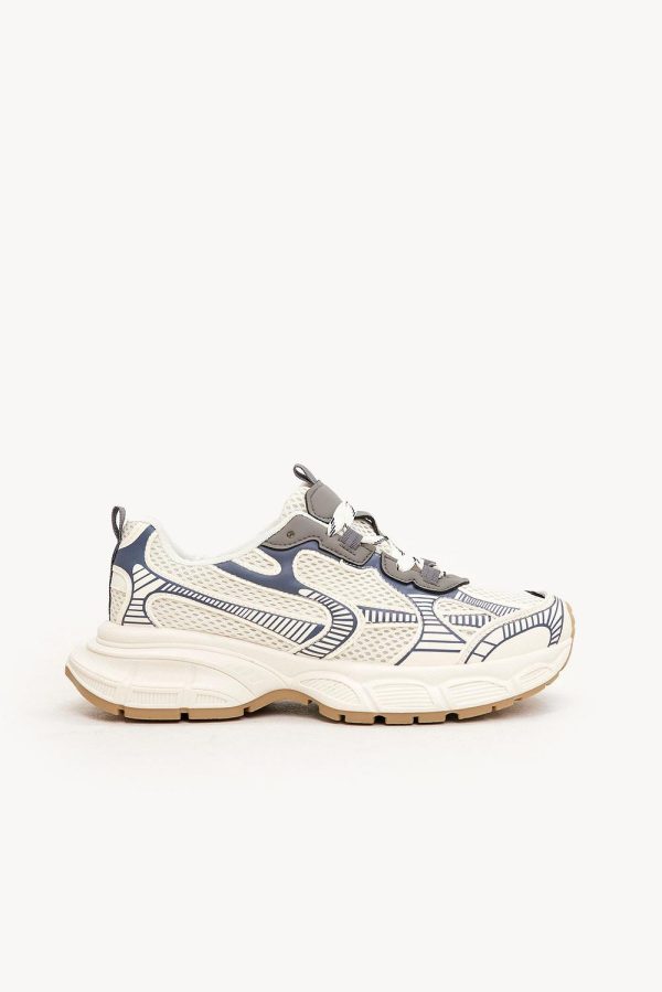 Deze sneakers hebben een grove zool, een vetersluiting, mesh details en blauwe en grijze details.