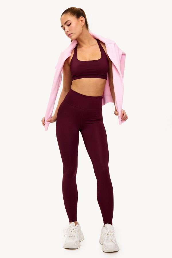 Deze bordeaux sports bra heeft een stijlvolle halter neck design met een statement cross-back. De naadloze stof met stretch geeft optimale support tijdens je gym session. Style deze bra met de matching legging voor een complete workout look.Model informatie: Ida is 175 cm en draagt maat S.