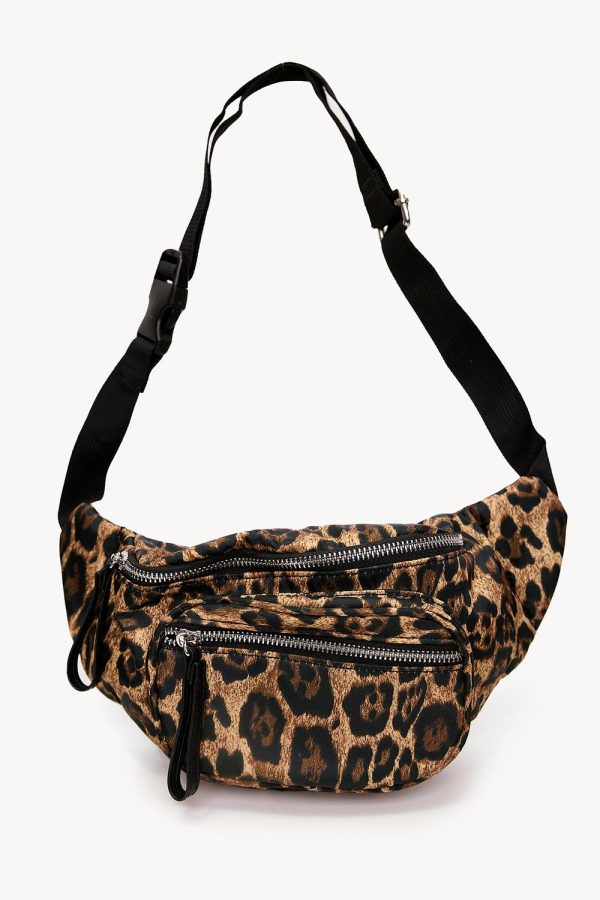 Deze statement bum bag heeft een opvallende leopard print in bruin-zwarte tinten. De dubbele ritssluitingen en verstelbare band in zwart geven een coole twist aan het design. Perfect voor een festival terwijl je je essentials stijlvol bij je draagt.
